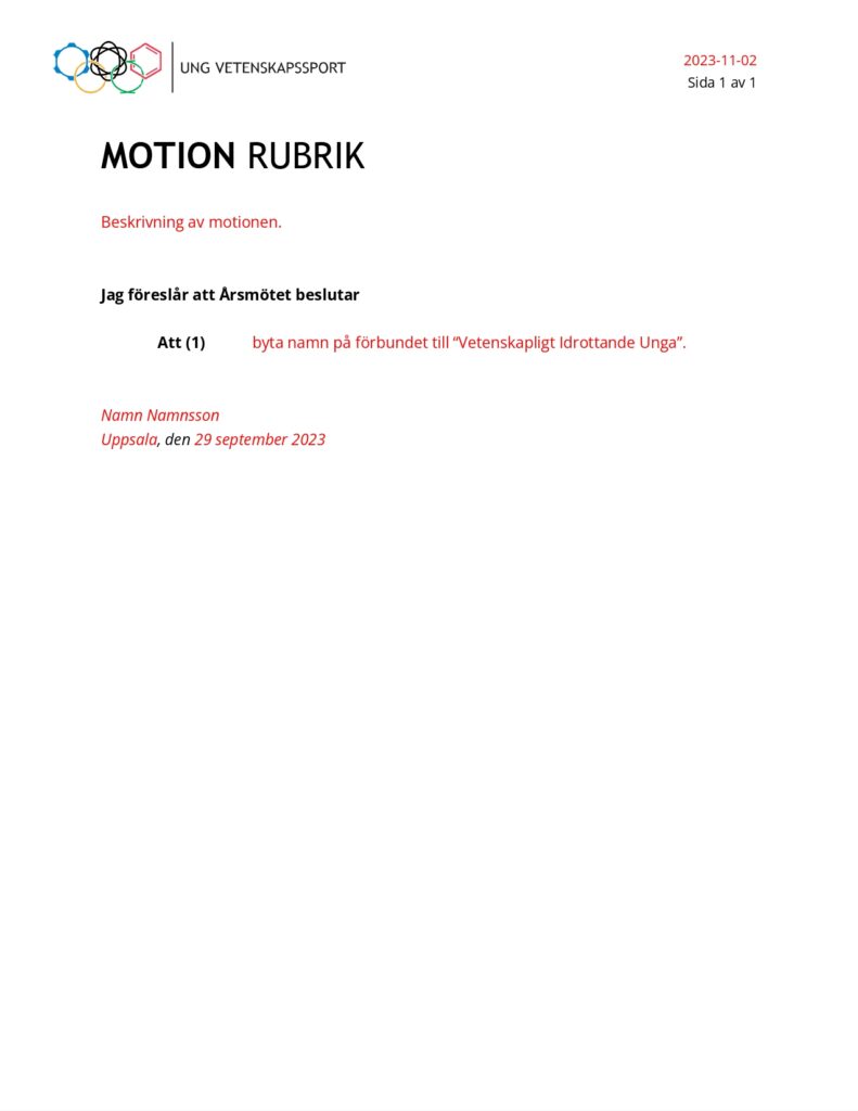 En motion är ett förslag från en medlem till årsmötet om att föreningen ska fatta ett visst beslut.