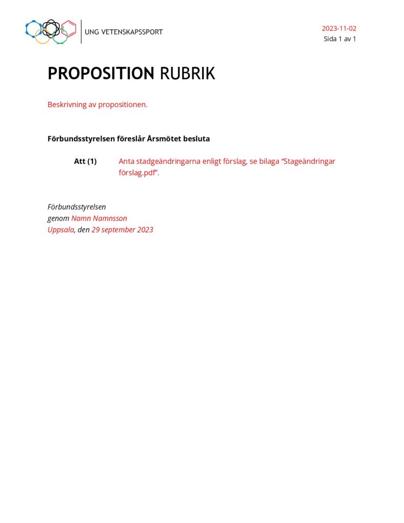 En proposition är ett förslag från styrelsen till årsmötet om att föreningen ska fatta ett visst beslut.