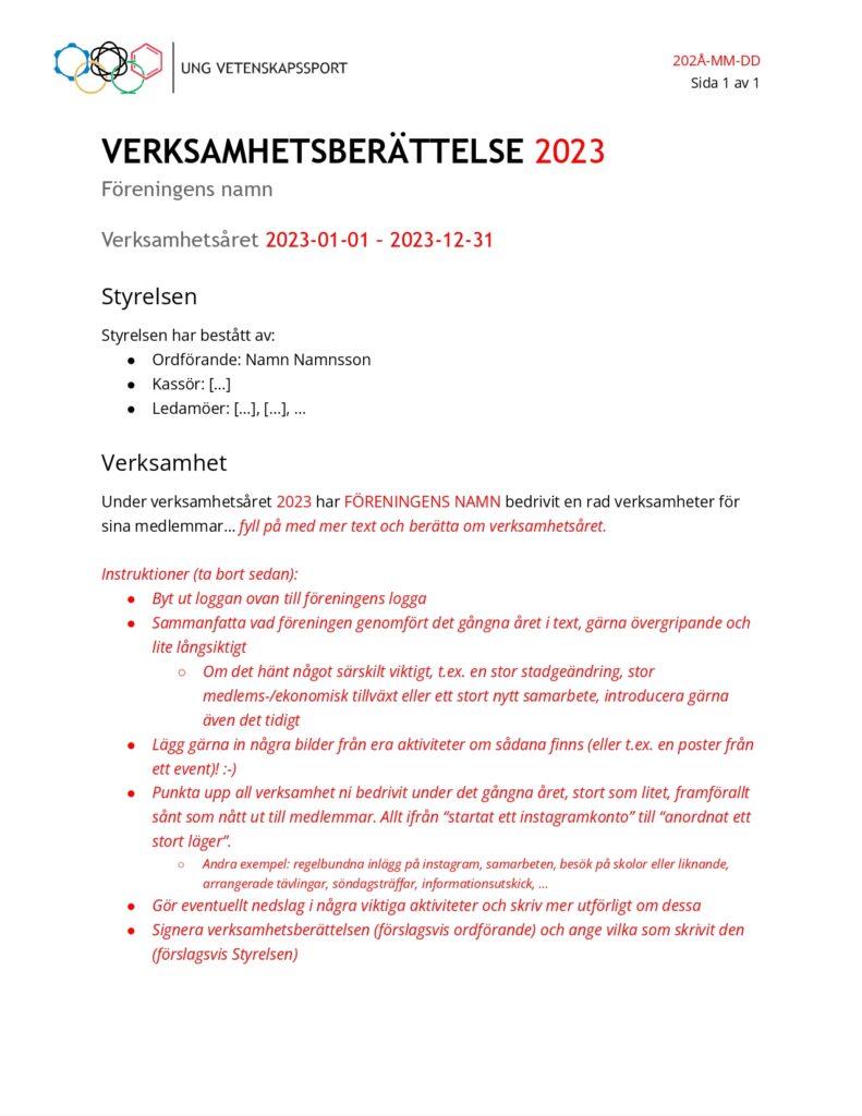 Här kommer det finnas information för dig som är engagerad i Ung Vetenskapssport. Planen är att lägga upp länkar till användbart material, som stadgar, mallar, exempel, loggor med mera.